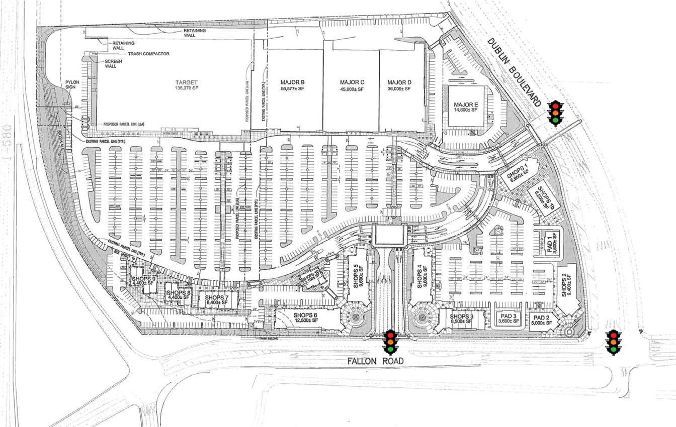 If you have driven Westbound on I-580 you might have noticed earth moving machines and grading going on just before Dublin. Located on the West side of the Fallon Road overpass is the start of the Fallon Gateway Shopping Center. Back in October of 2010 Target purchased 10 acres of land within the development which is slated to open the new store on October 6, 2011. The new store will be about 135,000 square feet and will include groceries and fresh food.