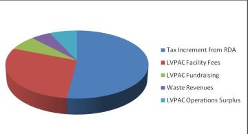 Below illustrates the source of funds. According to the LVPAC they currently have over $11 million of their own funds to put towards the project and have a goal of $22 million by December of 2013. The estimated cost of the new theater is $61 million with an annual operating budget of $7.2 million. This cost of the theater has decreased by $18 million from original plans.